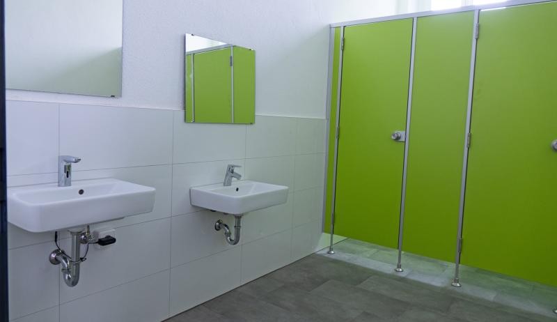 Die Grundschule Sundheim hat das Gebäude der ehemaligen Wilhelmschule im August 2020 und damit inmitten der Corona-Pandemie bezogen. Die Sanitärräume, die sie dort vorfanden, wirkten jedoch alles andere als einladend, weil stark in die Jahre gekommen: Die Kabinen waren eng und übergittert und auch den Fliesen an den Wänden sah man ihr Alter deutlich an. „Einige Kinder warteten deshalb mit dem Toilettengang sogar, bis sie wieder zu Hause waren“, berichtet Anja Weinacker. Weil ursprünglich vorgesehen war, dass die Grundschule Sundheim lediglich zwei bis drei Jahre im Gebäude der ehemaligen Wilhelmschule bleibt, wurde von einer Sanierung der Toilettenräume zunächst abgesehen. Der Wunsch kam wieder auf, „nachdem klar war, dass wir doch länger bleiben müssen“, berichtet Anja Weinacker. In den Sommerferien 2025 begannen schließlich die Umbaumaßnahmen im Erdgeschoss. Rund 150 000 Euro hat die Stadt in die Sanierung investiert. Das Ergebnis: moderne Sanitärräume mit schneeweißen Kacheln und limettengrünen Kabinen. „Wunder-wunderschön und farblich passend zu unseren Klassenzimmern“, freut sich Anja Weinacker. „Es wurden neue Wände eingezogen, neue Türen eingesetzt und neue Waschbecken installiert“, berichtet die Schulleiterin. Auch die unterschiedlichen Körpergrößen der noch heranwachsenden Mädchen und Jungen wurden bei der Ausstattung bedacht: So gibt es etwa niedrigere und höhere Toilettensitze. Auf der Jungentoilette gibt es zusätzlich zwei Urinale in altersentsprechender Höhe.
