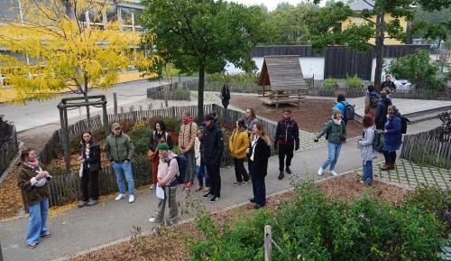 Dass eine naturnahe Betreuung der Kleinsten und ein hoher Sicherheitsstandard kein Widerspruch sein müssen, konnte die deutsch-französische Gruppe in den Kindergärten von Odelshofen, Kork und Sundheim sowie in der Naturkita Sundheim erleben. Teils großzügige Grünflächen mit vielfältigen Lern- und Erfahrungsräumen stärken dort das Selbstvertrauen der Kinder und leisten zugleich einen wichtigen Beitrag zum Klima- und Hitzeschutz. Besonders beeindruckt zeigten sich die französischen Vertreterinnen und Vertreter vom Konzept der Naturkita Sundheim, in der sich das Kita Leben ganzjährig überwiegend im Freien abspielt. Auf vorgefertigtes Spielmaterial wird weitgehend verzichtet, die Natur selbst soll vielmehr zum Entdecken, Bewegen und kreativen Gestalten anregen.