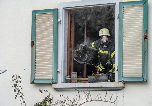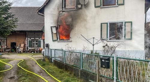 Die Feuerwehr, die um 14.11 Uhr alarmiert wurde, nachdem ein Anwohner aus einem Fenster schlagende Flammen gemeldet hatte, ging sofort ins Gebäude hinein, um den Brand von innen zu bekämpfen, erklärt der stellvertretende Feuerwehrkommandant Adrian Scherer. Dennoch ließ es sich nicht verhindern, dass das Feuer auch auf ein zweites Zimmer übergriff. Im Obergeschoss barst eines der Fenster aufgrund der starken Hitzeentwicklung, außerdem wurde das gesamte Wohnhaus stark verraucht. Nachdem das Feuer gelöscht war, suchten die Feuerwehrleute das Gebäude mit Wärmebildkameras nach Glutnestern ab, um sicherzustellen, dass der Brand nicht wieder aufflammt. Der Einsatz dauert bis 18.15 Uhr an.