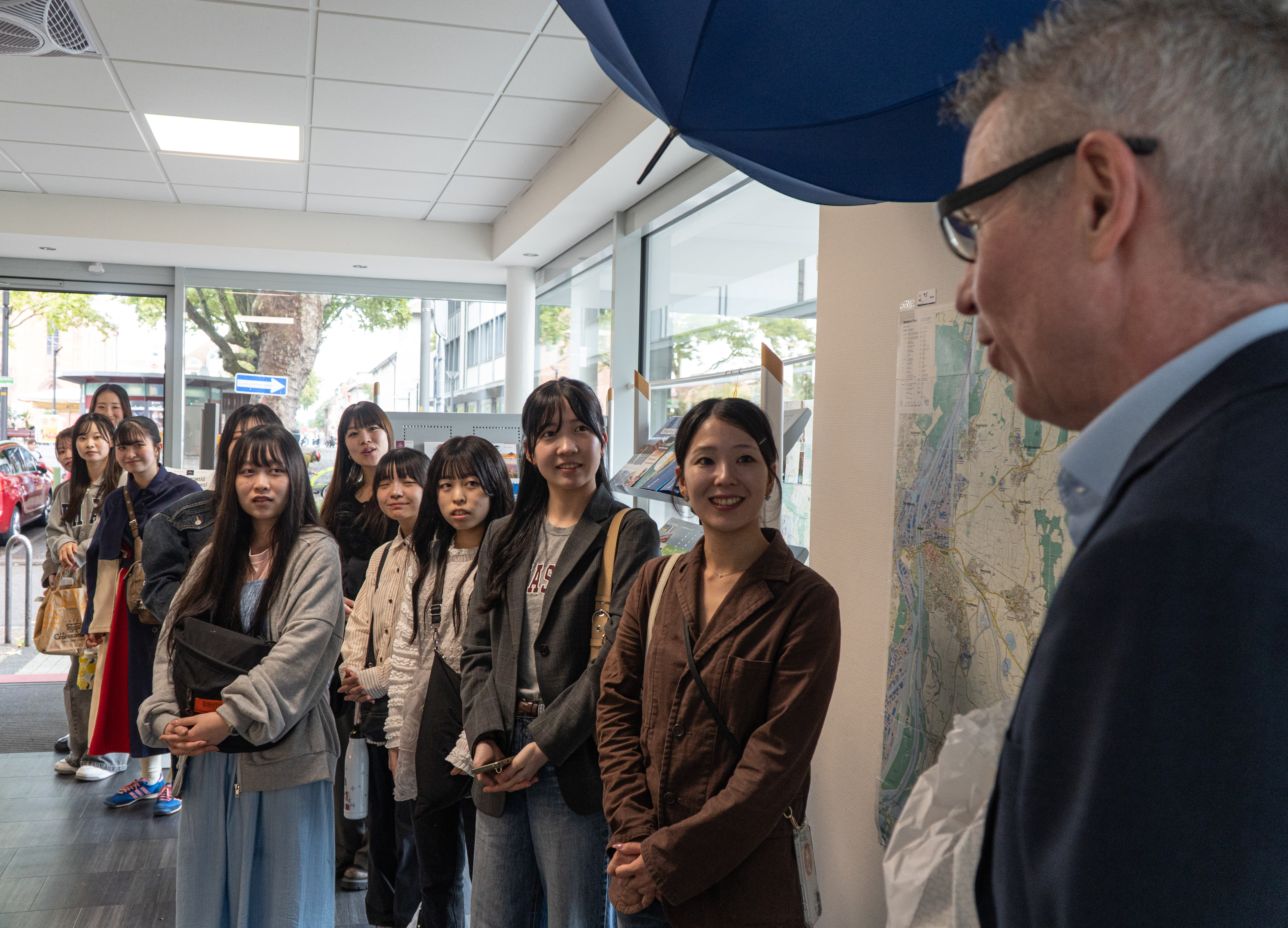 Es war zwar ein kurzer, dafür aber umso spannenderer Besuch: Zwölf Tourismus-Studentinnen aus Japan machten gemeinsam mit ihrer Professorin Station in der Kehler Tourist-Information. Bei einer Laugenbrezel kamen sie mit dem Kehl-Marketing-Geschäftsführer, Christoph Hodapp, ins Gespräch und interessierten sich vor allem für die Kultur und den Tourismus im deutsch-französischen Lebensraum.
