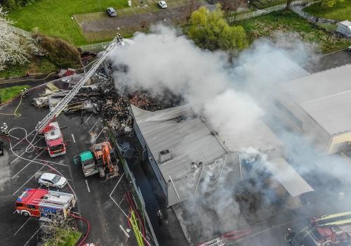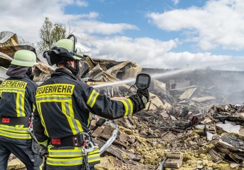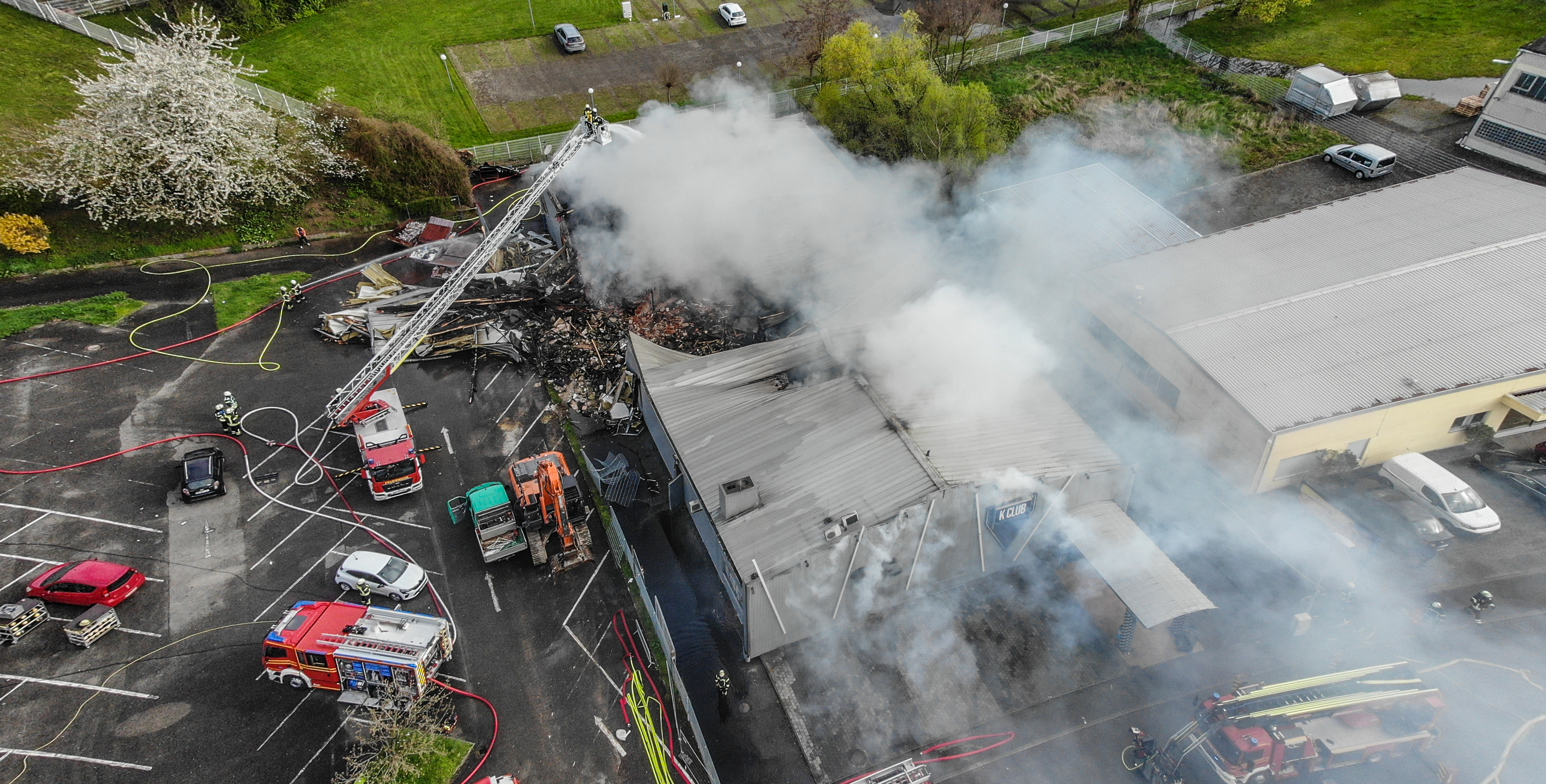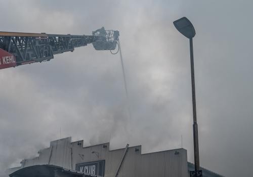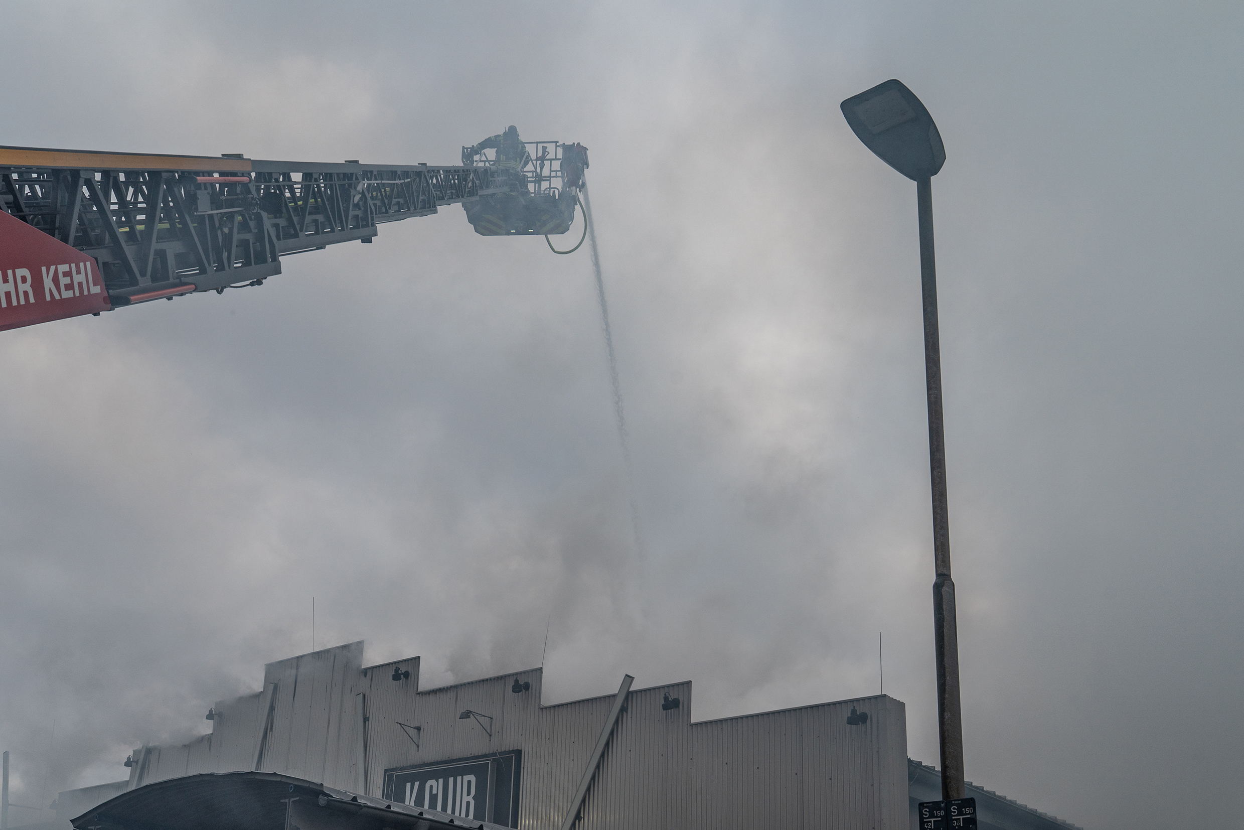 Eine Diskothek im Kehler Gewerbegebiet Sundheim ist in der Nacht zum Sonntag (29. März) komplett ausgebrannt; am Vormittag ist dann das Dach eingestürzt. Als die Feuerwehr, die um 3.46 Uhr alarmiert wurde, in der Siemensstraße eintraf, stand das Gebäude bereits im Vollbrand. Laut Angaben des Betreibers befand sich niemand mehr im Gebäude. Im Zusammenhang mit dem Brand gab es keine Verletzten. Der Einsatzleiter der Kehler Feuerwehr, David Oster, lobte den Betreiber: Die rund 750 Besucherinnen und Besucher der Diskothek seinen von den Security-Kräften koordiniert über die drei Straßen abgeleitet worden. Am Sonntagnachmittag gehen die Abbruch- und Löscharbeiten ihrem Ende zu.