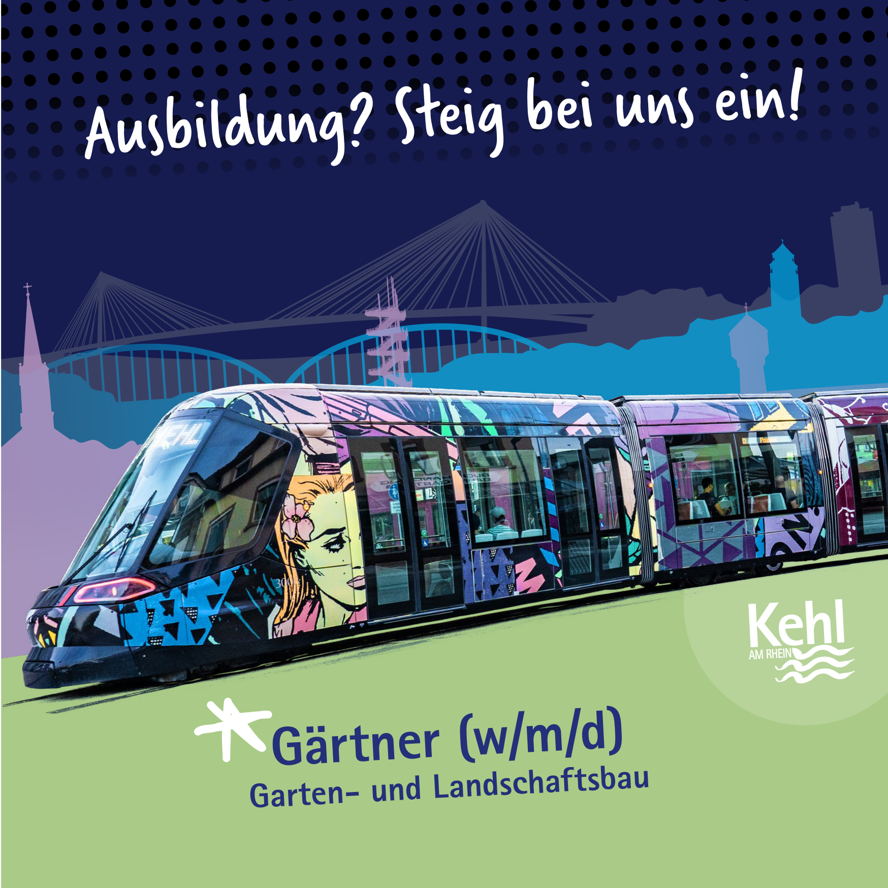 Bei uns zu arbeiten, bedeutet ab dem ersten Tag Teil eines engagierten Teams zu sein. Wir freuen uns auf die frischen Ideen unserer neuen Mitarbeiterinnen und Mitarbeiter und legen viel Wert auf Ihre persönliche Weiterentwicklung. Beispiel gefällig? Je nach Ausbildungsberuf oder Studium geben wir Ihnen genügend Zeit zum Lernen oder fördern Sie bei Bedarf mit eigens auf Sie zugeschnittenen Zusatzangeboten. Vom Schreibtraining für Journalisten, über Pflanzenseminare für unsere Junggärtnerinnen und -gärtner, bis hin zur Feuerwehr-Taucherausbildung. Wenn Sie sich auf einen Weg festlegen, werden wir unser Möglichstes tun, um Sie bei diesem zu unterstützen. Gleichzeitig möchten wir Ihnen aber auch die Sicherheit geben, Ihre Zukunft selbst planen zu können. Deshalb wird Ihre Ausbildungsvergütung nach den aktuell geltenden Tarifverträgen bezahlt. Außerdem ist es unser Ziel, Sie bei entsprechender Leistung im Anschluss an die Ausbildung zu übernehmen. Wir möchten, dass Sie sich in Kehl wohlfühlen und uns im Gegenzug dabei helfen, die Rheinstadt Tag für Tag weiterzuentwickeln.