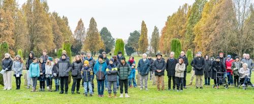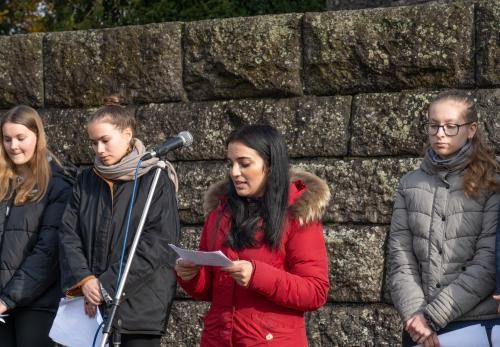 „In Zeiten des Krieges oder auf der Flucht erfahren Menschen, dass die physischen und emotionalen Verletzungen, die sie erleiden, nicht von der Farbe ihres Passes oder ihrer kulturellen Zugehörigkeit abhängen. Eine Mutter, die um das Leben ihres Kindes weint, eine Schwester, die um ihren Bruder trauert, ein Vater, der nach seiner Familie sucht, ein Flüchtling, der auf der Suche nach Sicherheit und Hoffnung ist – all diese Menschen teilen das gleiche unerträgliche Gefühl von Verlust, Angst und Verzweiflung. Das Leiden im Krieg ist nicht nur ein politisches oder nationales Problem, sondern eine menschliche Tragödie – über alle geografischen und kulturellen Grenzen hinweg.“ Wolfram Britz schließt seine Rede mit dem Dank an alle, die an diesem grauen Novembermorgen an der Gedenkstunde teilnehmen: „Wer das Leid eines anderen verkennt, verliert die Menschlichkeit, die uns alle miteinander verbindet.“ Deshalb sei es wichtig, die Geschichte der eigenen Stadt und der Vorfahren zu kennen: „Niemand kann uns garantieren, dass nicht auch wir zu Flüchtlingen werden können.“