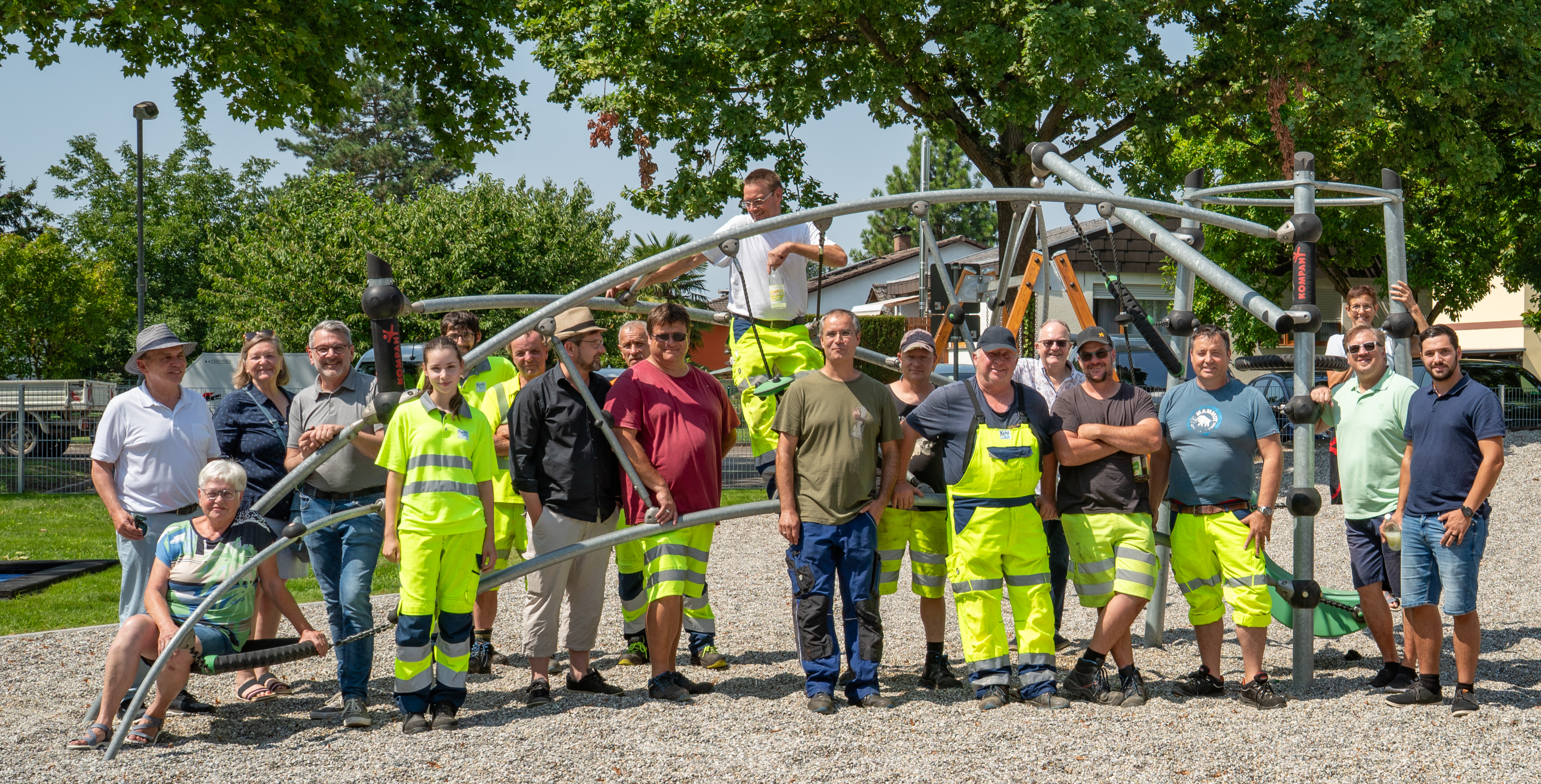 Dass die Stadt so viel Geld investiert habe, sei ein Zeichen dafür, wie wichtig ihr Kinder und Familien seien, lobte Ortsvorsteher Heinz Rith bei der offiziellen Eröffnung und erinnerte daran, dass der etwa 50 Jahre alte Spielplatz auch unabhängig vom Zerstörungswerk der Ameise eine Sanierung gebrauchen konnte. Plätze wie die überdachte Sitzgruppe gebe es viel zu wenige in der Ortschaft, findet er, schließlich könnten sich dort auch Jugendliche treffen oder Senioren zum Kartenspiel. „Das zeichnet uns als Stadt aus, dass wir eine Problemlage erkennen, finanzielle Mittel finden und Lösungen bedarfsgerecht umsetzen“, sagte Oberbürgermeister Wolfram Britz. So habe man die bei den Kindern besonders beliebte Seilbahn „als Highlight“ erhalten. Gemeinsam mit Heinz Rith dankte er Amir Gidaui für die Planung und Koordination sowie den Mitarbeitenden des Betriebshofs für die Umsetzung.