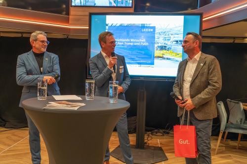 Ähnlich wie der Hafen hält es auch die Sparkasse, wie Vorstandsvorsitzender Wolfgang Huber berichtete: Zum 175. Jubiläum werde es mehrere Veranstaltungen geben – eine davon war das Unternehmerforum. Oberbürgermeister Wolfram Britz gefiel die Idee von der gemeinsamen Veranstaltung: „Wir sind auf einem richtig guten Weg, wenn alle sich beteiligen, das Gemeinsame in den Vordergrund stellen – und nicht das Trennende.“