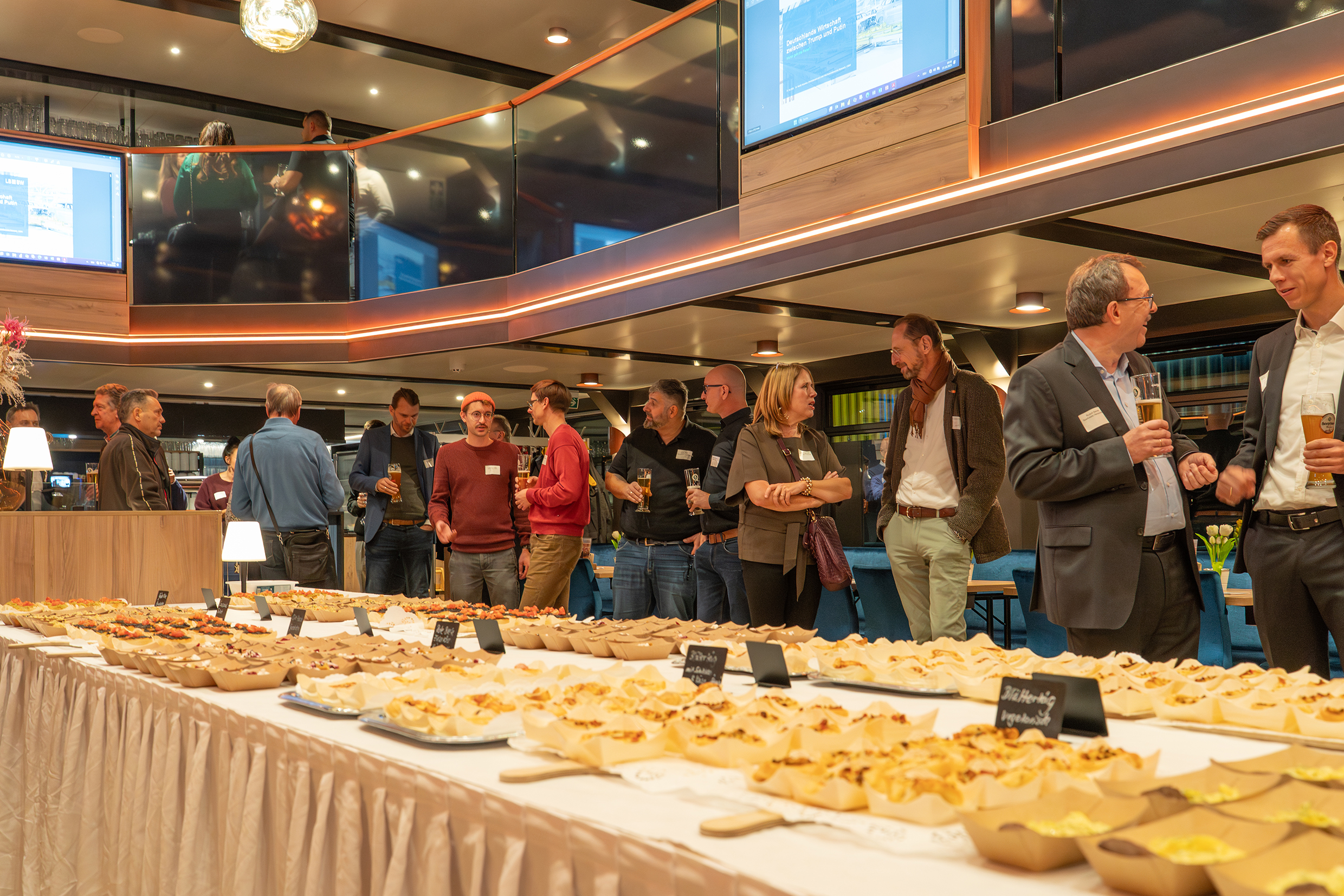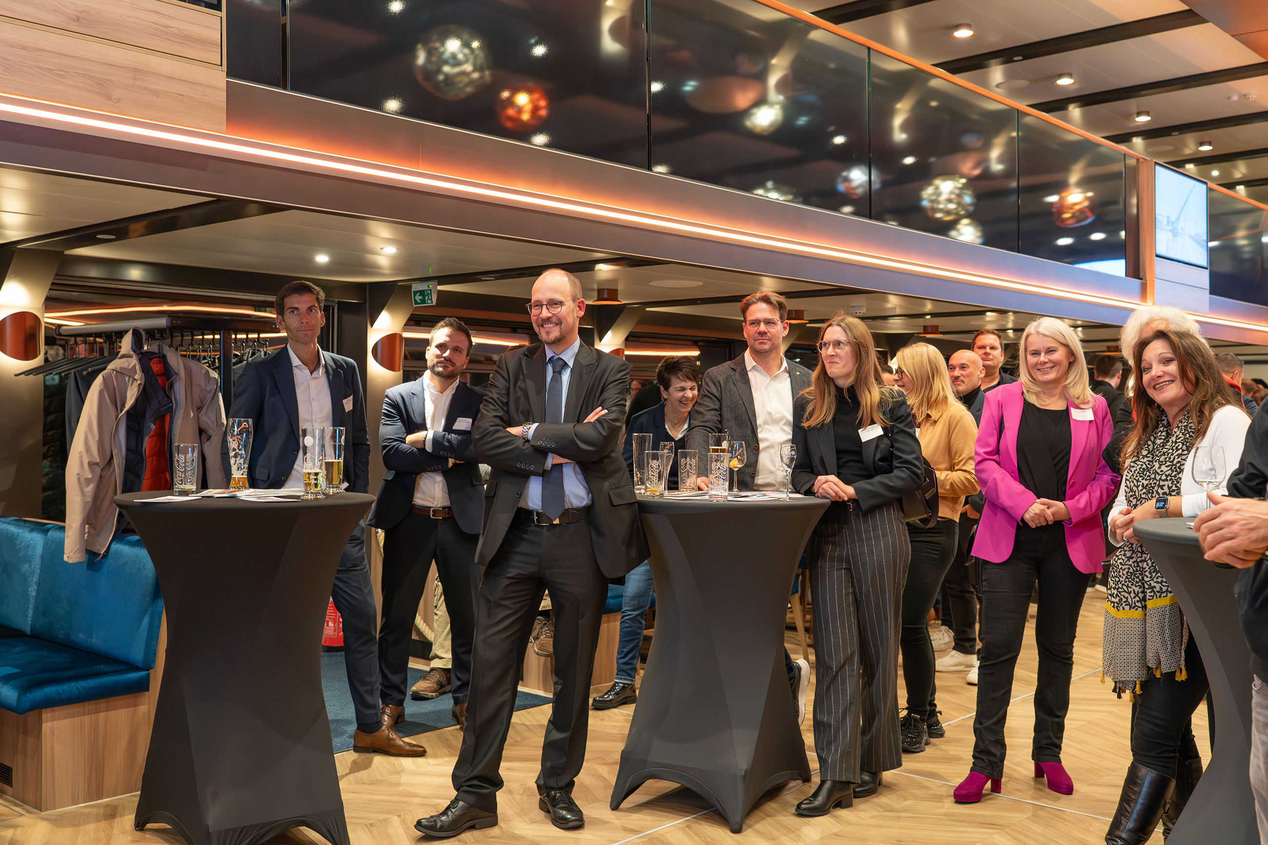 Weil es schwierig wäre, die Sicherheit von Tausenden Besucherinnen und Besuchern im Industriegebiet zu gewährleisten, feiert der Hafen sein 125. Jubiläum nicht mit einem großen Volksfest – wie beim hundertjährigen Bestehen, erklärte Hafendirektor Volker Molz, warum zum Unternehmerforum auf der „Karlsruhe“ eingeladen wurde. Das sei eine der Veranstaltungen aus einem ganzen Reigen. In der Innenstadt habe sich der Hafen mit der Hafenbühne beim Messdi präsentiert und sei dort mit der Ausstellung „Kehler Berge“ von Künstlerin Gabriele Engelhardt noch bis zum 6. Januar vertreten.