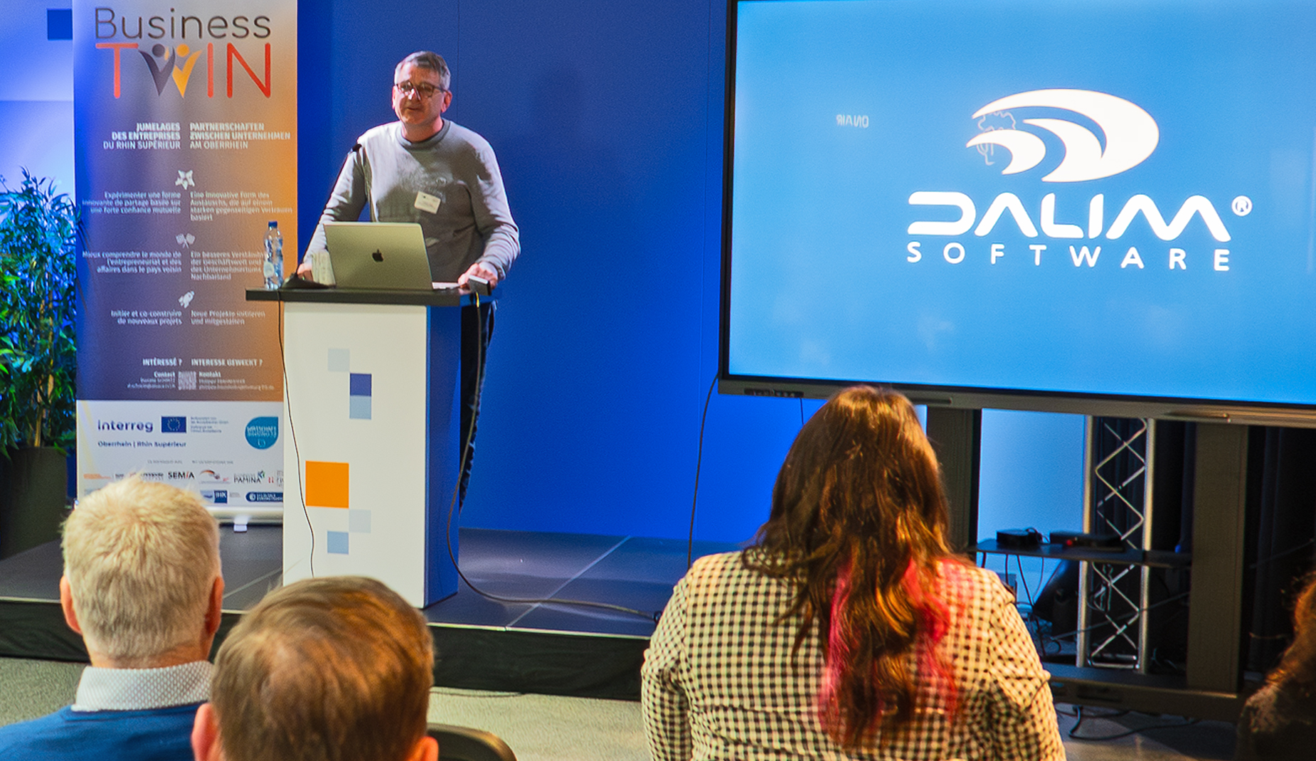 Die IHK hilft Unternehmen aus der Region dabei, ihren unternehmerischen Zwilling auf der anderen Rheinseite zu finden. „Business Twin“ heißt das durch Interreg geförderte Projekt, das Betriebe mit vergleichbarer Ausrichtung oder gemeinsamen Interessen, aber aus verschiedenen Ländern, zusammenbringt. Das sogenannte „Matching“ übernimmt die IHK und vergleicht Betriebe anhand ihrer Geschäftsausrichtung, ihrer Unternehmensgröße und ihrer geografischen Lage. Dabei wird sie beispielsweise durch ihr französisches Pendant, die Chambre de commerce et d'industrie Alsace (kurz: CCI Alsace), unterstützt. Ergibt sich ein Treffer, steht es den Geschäftsführenden frei, ob sie eine grenzüberschreitende Unternehmenspartnerschaft eingehen wollen. Juristische Verpflichtungen ergeben sich daraus nicht, stattdessen präsentierte IHK-Referent für die Zusammenarbeit am Oberrhein, Philippe Fraunhofer, eine Reihe von Vorteilen: Das Projekt „Business Twin“ richtet sich in erster Linie an kleine und mittlere Unternehmen. Ihnen bietet sich durch eine Partnerschaft die Gelegenheit, neue Märkte im Ausland zu erschließen. Auch bei der Personalgewinnung können die Partnerunternehmen nach Darstellung der IHK mit Offenheit und interkultureller Kompetenz punkten, und in Krisensituationen können befreundete Unternehmen als zusätzliche Ansprechpartner dienen.