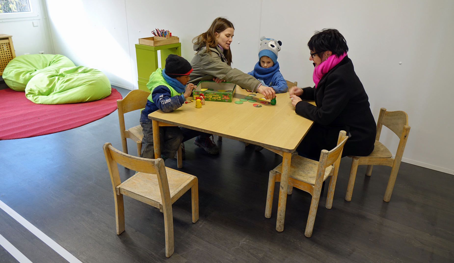 Auch von innen kann sich der neue Rückzugsort sehen lassen: Ein großer Sitzsack lädt zum Lümmeln ein, am kleinen Tisch wird „Zicke Zacke Hühnerkacke“ gespielt und der große Tisch bietet unter anderem Platz für Vorschulaufgaben. All das gehört für die fünfzehn Sundheimer Naturkita-Kinder bereits zum Alltag. Dass dieses Programm künftig auch bei extremer Kälte ohne frierende Nasen stattfinden kann, ist ein Gewinn für alle. Denn auch wenn Kinder und Fachkräfte sich weiterhin fast ausschließlich in der Natur aufhalten werden, macht das winterliche Draußensein mit einer warmen Rückzugsmöglichkeit noch viel mehr Spaß.