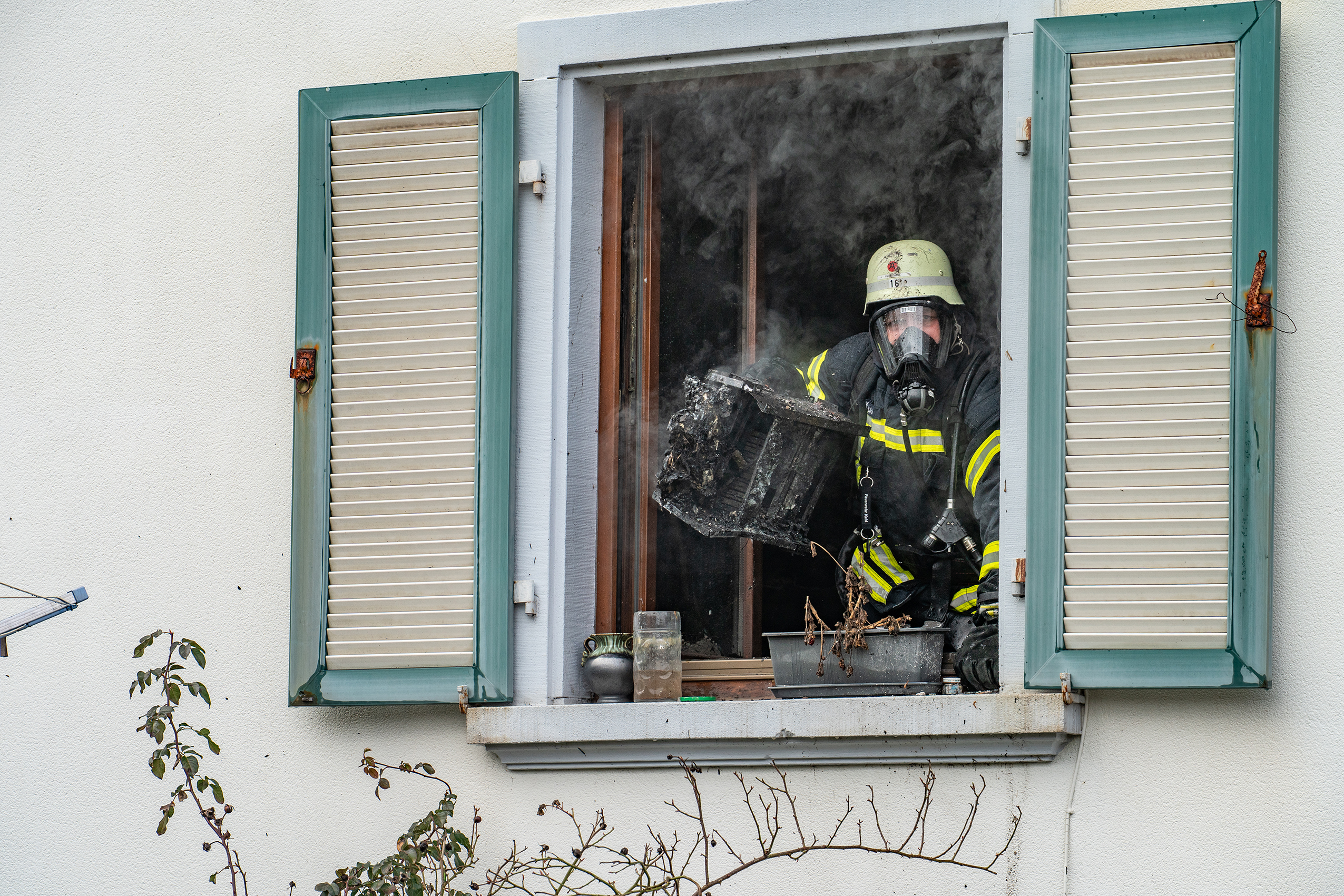 Die Feuerwehr, die um 14.11 Uhr alarmiert wurde, nachdem ein Anwohner aus einem Fenster schlagende Flammen gemeldet hatte, ging sofort ins Gebäude hinein, um den Brand von innen zu bekämpfen, erklärt der stellvertretende Feuerwehrkommandant Adrian Scherer. Dennoch ließ es sich nicht verhindern, dass das Feuer auch auf ein zweites Zimmer übergriff. Im Obergeschoss barst eines der Fenster aufgrund der starken Hitzeentwicklung, außerdem wurde das gesamte Wohnhaus stark verraucht. Nachdem das Feuer gelöscht war, suchten die Feuerwehrleute das Gebäude mit Wärmebildkameras nach Glutnestern ab, um sicherzustellen, dass der Brand nicht wieder aufflammt. Der Einsatz dauert bis 18.15 Uhr an.